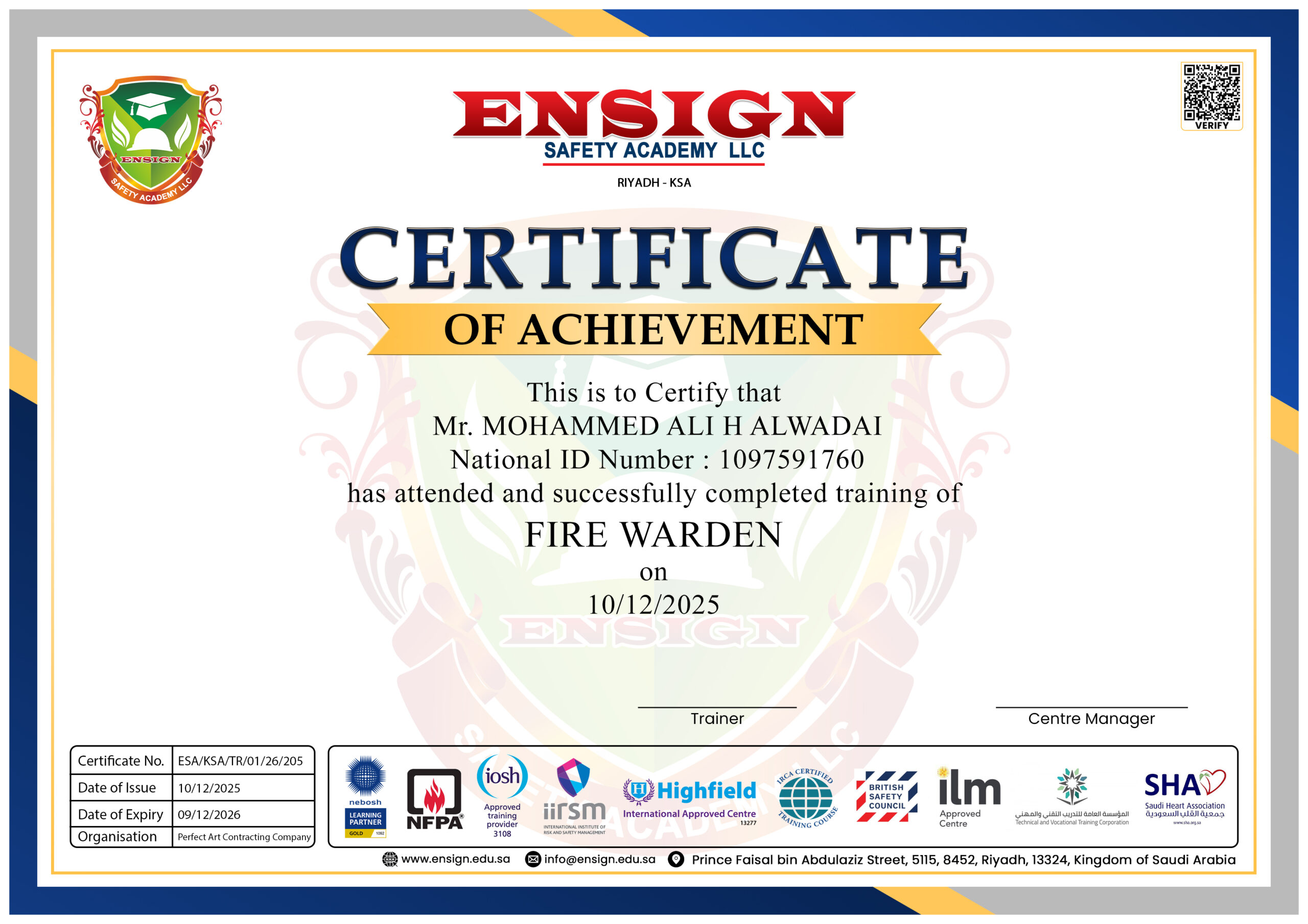 Mohammed Ali H Alwadai – FIRE WARDEN
